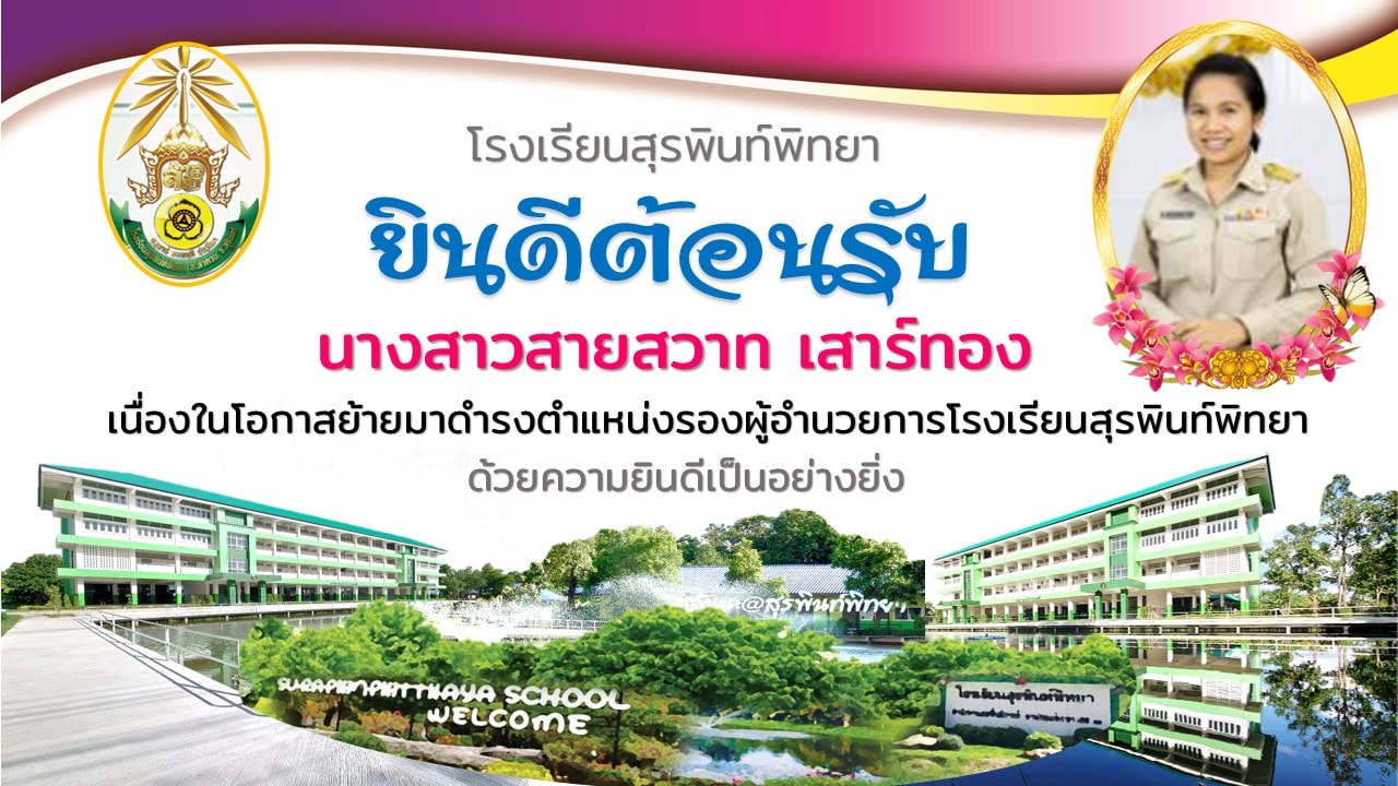 ยินดีต้อนรับ นางสาวสายสวาท เสาร์ทอง เนื่องในโอกาสย้ายมาดำรงตำแหน่งรองผู้อำนวยการโรงเรียนสุรพินท์พิทยา ด้วยความยินดีเป็นอย่างยิ่ง